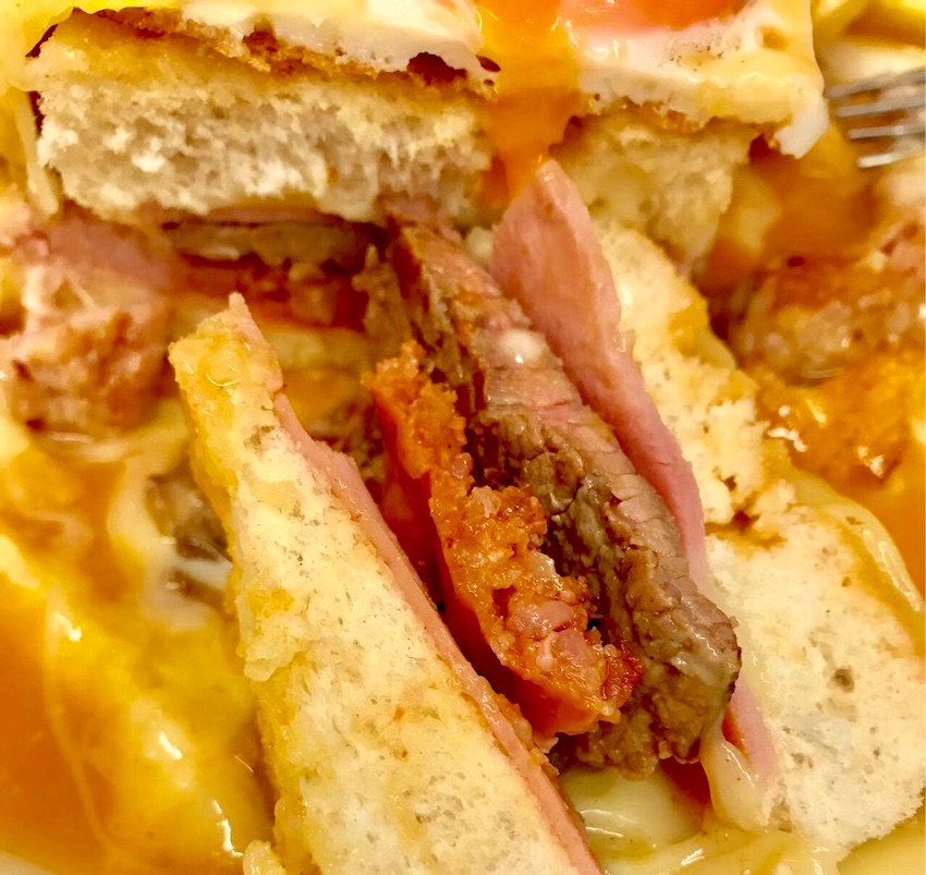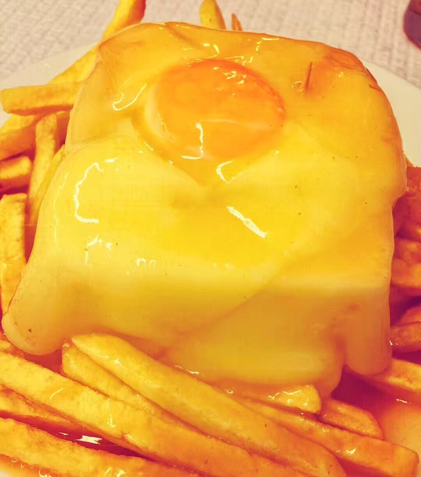 先看这个名叫Francesinha的法式吐司肉饼,这外观,法国人非得气的背过气去不可。