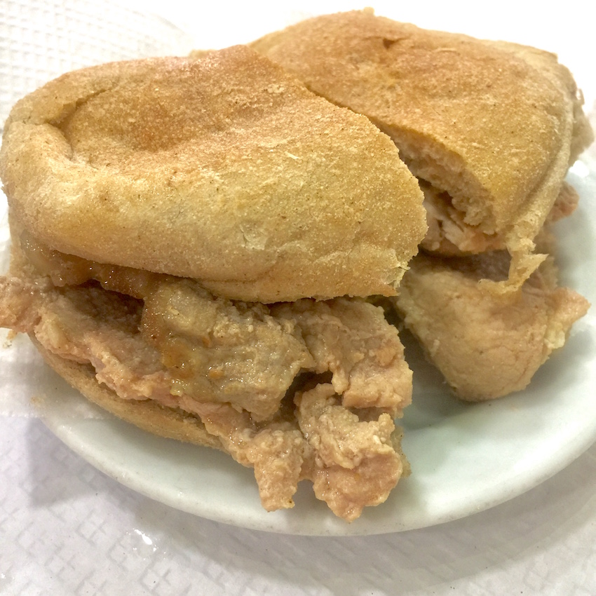 再来看看这个猪肉三明治——Bifanas。肉酥而不柴,调料的味儿恰到好处,香而不腻。外面的面包绝对是亮点,我是第一次吃到这么好吃的面包。