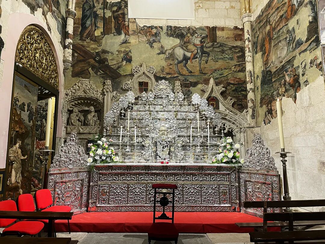 壁画背景下的银质神龛非常奢华